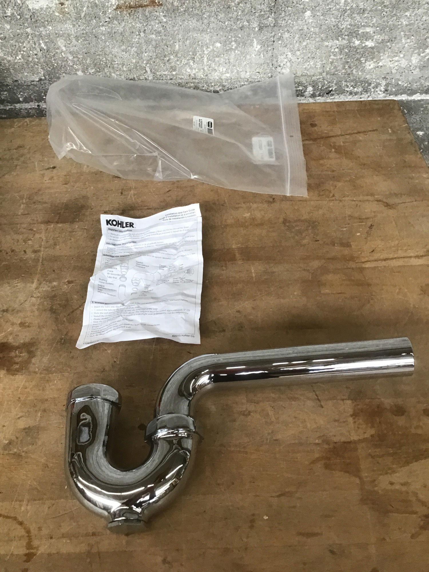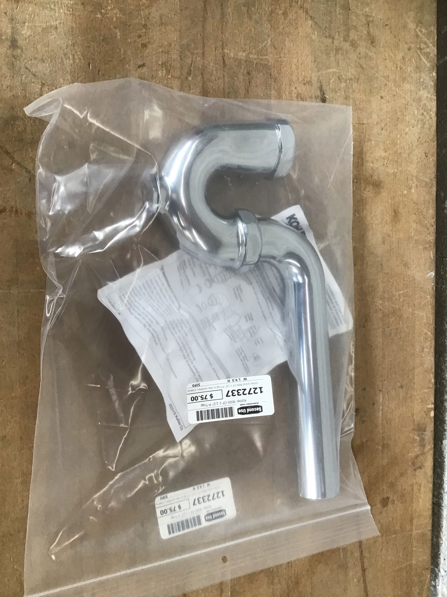 Kohler brand 9000-CP 1-1/2" P-Trap in new condition, missing its wall escutcheon, price reflects. See it retailing new here.