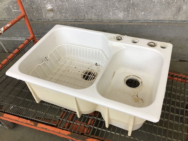 Used Rohl Fireclay drop-in sink with drain grate insert. This sink is about 20 years old and needs a deep clean but is ready for more use! Similar contemporary models sell for $800+
