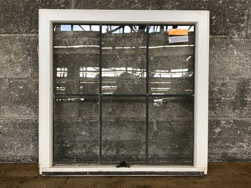 This wooden window sash features a white paint job and six leaded true divided window panes. A little paint and a little cleanser and this window will shine!