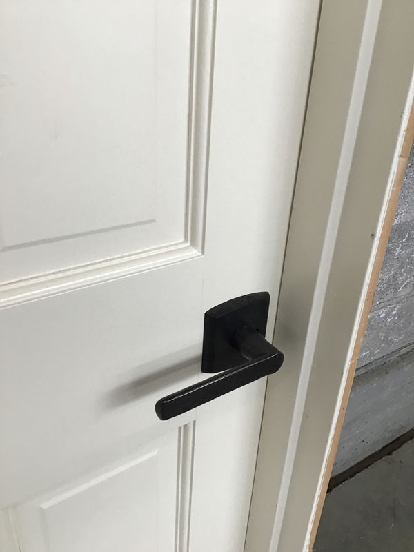 Very clean raised six panel interior door with nice black finished hardware. Comes in a jamb for a 2x4 wall.
