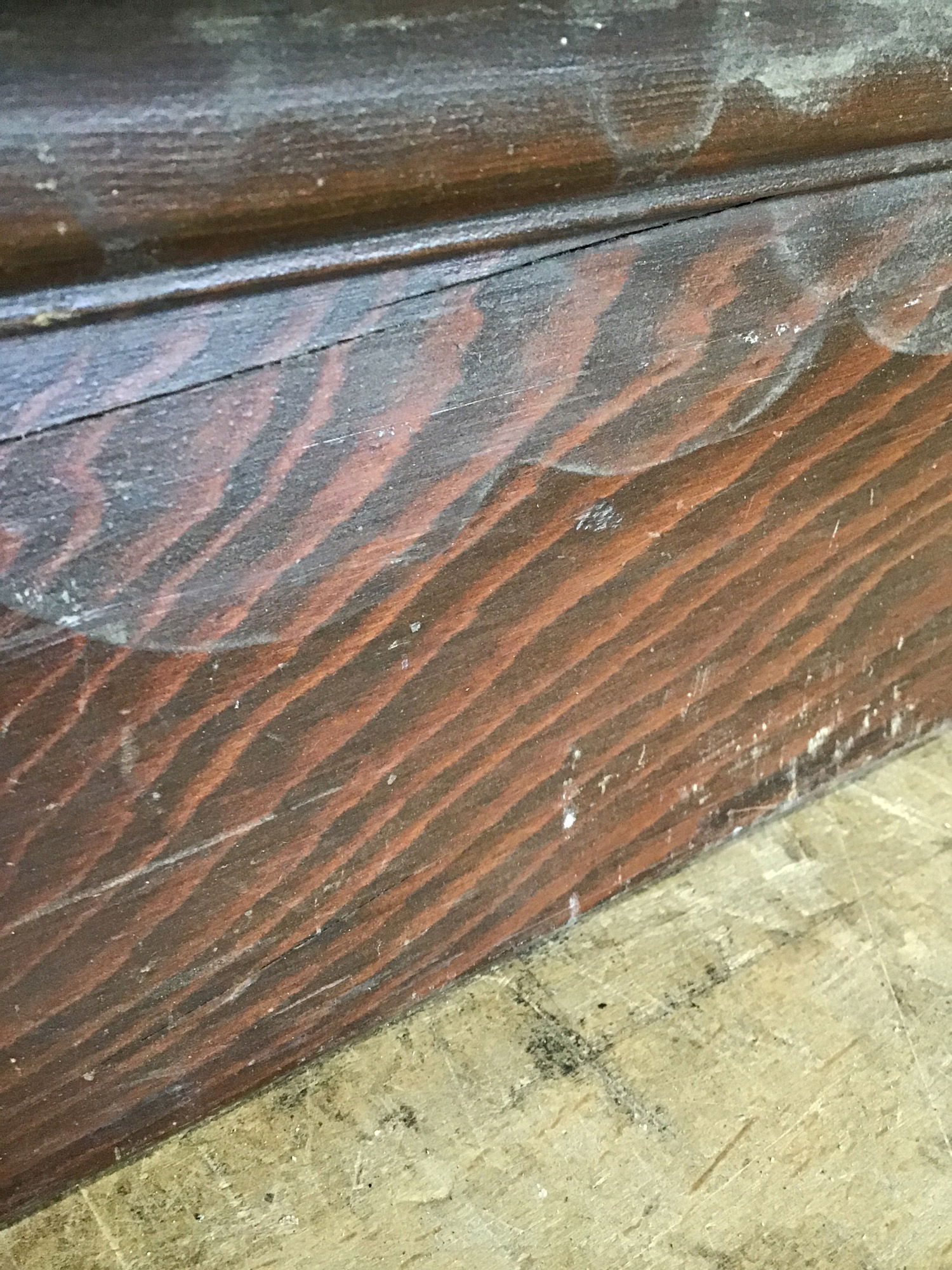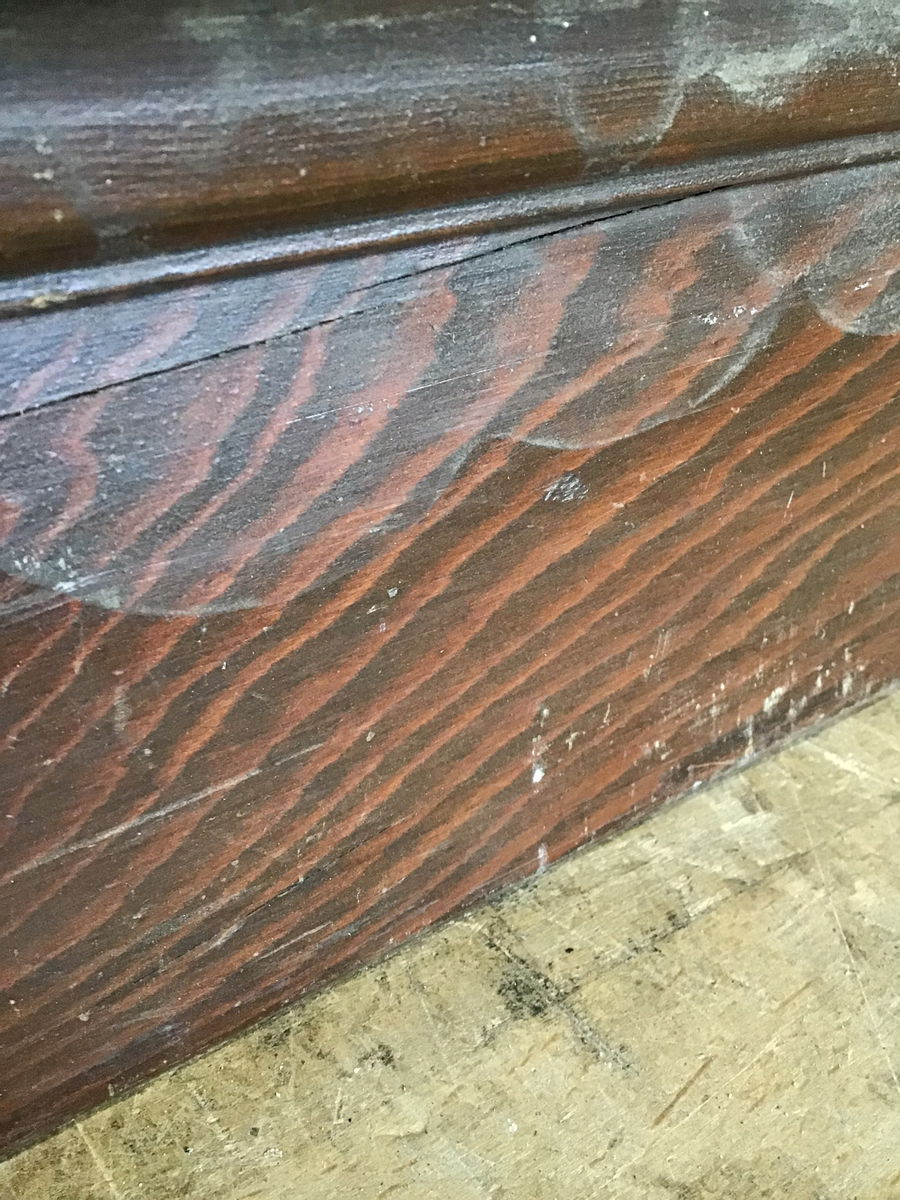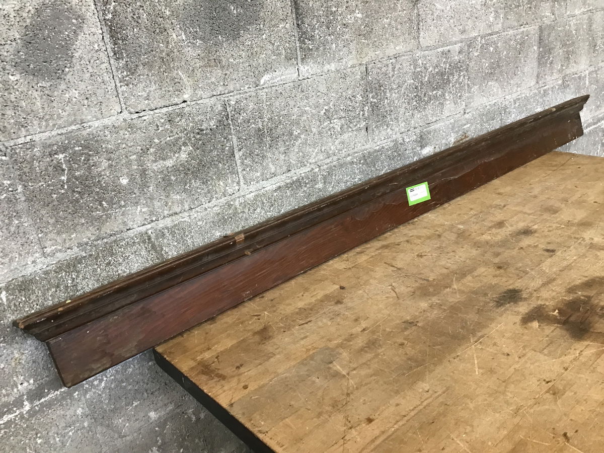 Vintage fir lintel featuring a dark stained finish and both finished sides. Some paint dribbles here and there but overall very nice looking. Length = Height