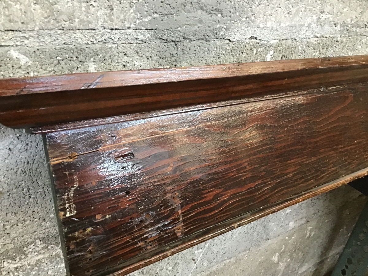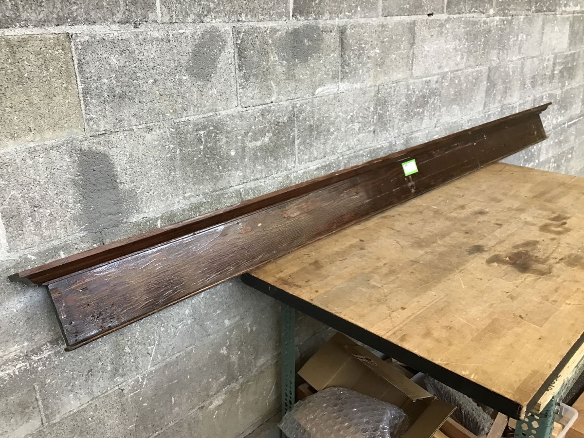 Vintage fir lintel featuring a dark stained finish and both finished sides. This one has a crack running along one end, but if you cut down past the crack you could still have a ~ 7' lintel. Length = Height