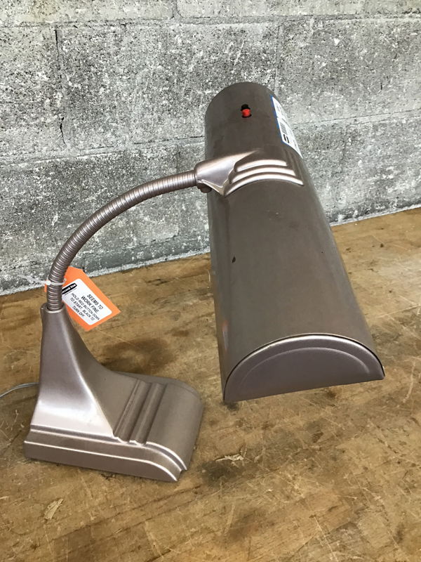This vintage, flexible neck desk lamp from Art Specialty Co. uses two fluorescent bulbs, which both seem to work fine when briefly tested.