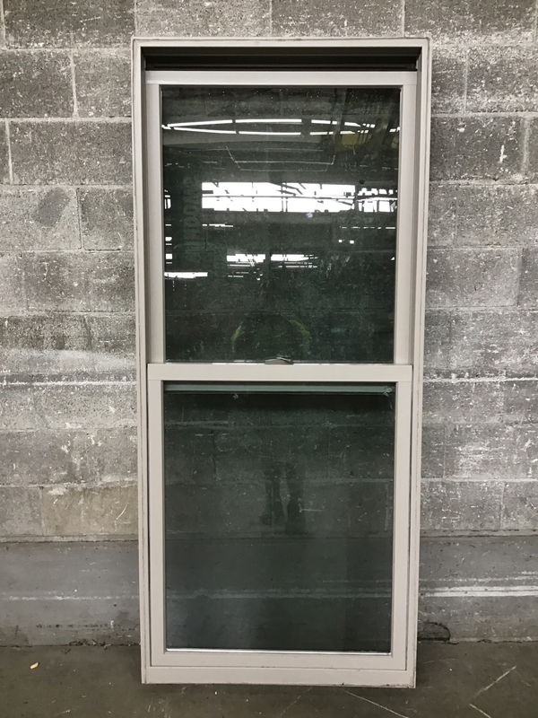 This fiberglass double hung window in taupe/beige color doesn't seem to want to latch properly. Price reflects.