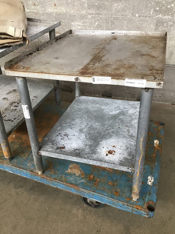 Commercial kitchen table or appliance stand. This one is missing a foot. Price reflects.
