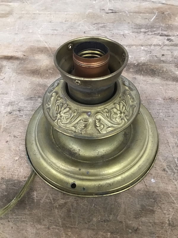 Vintage pressed brass fitter, needs a new socket. Check out our lighting services for help!