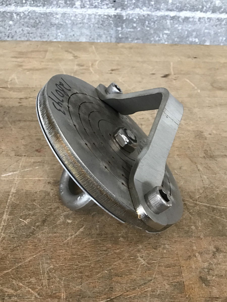 Made by Guardian Fall Protection. For use with HLLs (Horizontal Lifeline). This stainless disc deforms as you fall, absorbing energy and slowing you down do you don't hit the ground as hard as you would otherwise. This is part of a larger system made by Guardian Fall Protection which you can see here.