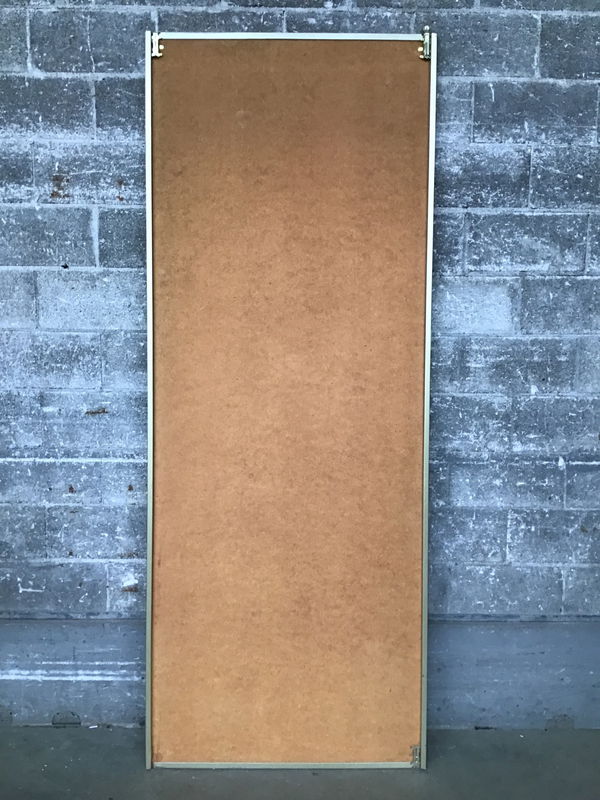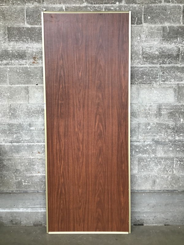 Extra tall gold framed sliding door with faux wood veneer, great for a closet or at a little partition. Also, would be a really great canvas for painting...