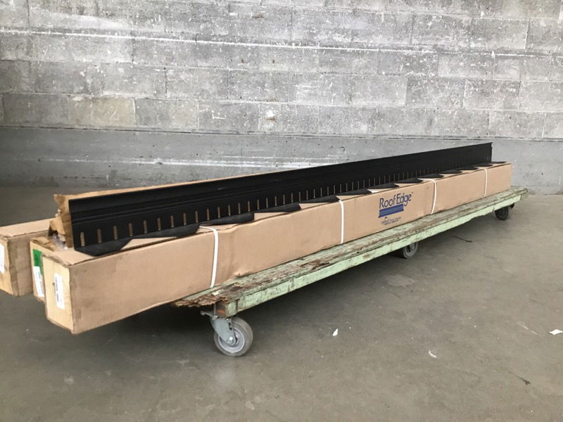 LiveRoof's RoofEdge aluminum edging for living roofs with anodized black finish. More info here. Box includes 10 8" x 4.25" x 3.25". See a similar product going for $1,000 per box.