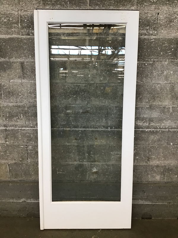 Full lite exterior door with astragal. In decent condition with no bore holes, but price reflects that this door has been J-stripped.