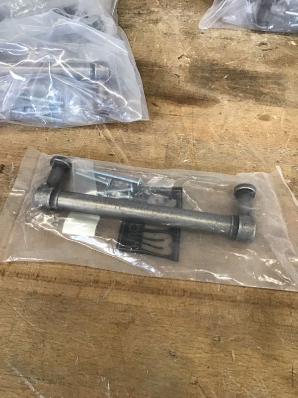 Set of 12 new MNG drawer pulls with a distressed pewter finish. Mounting screws included. Photo may be representational.