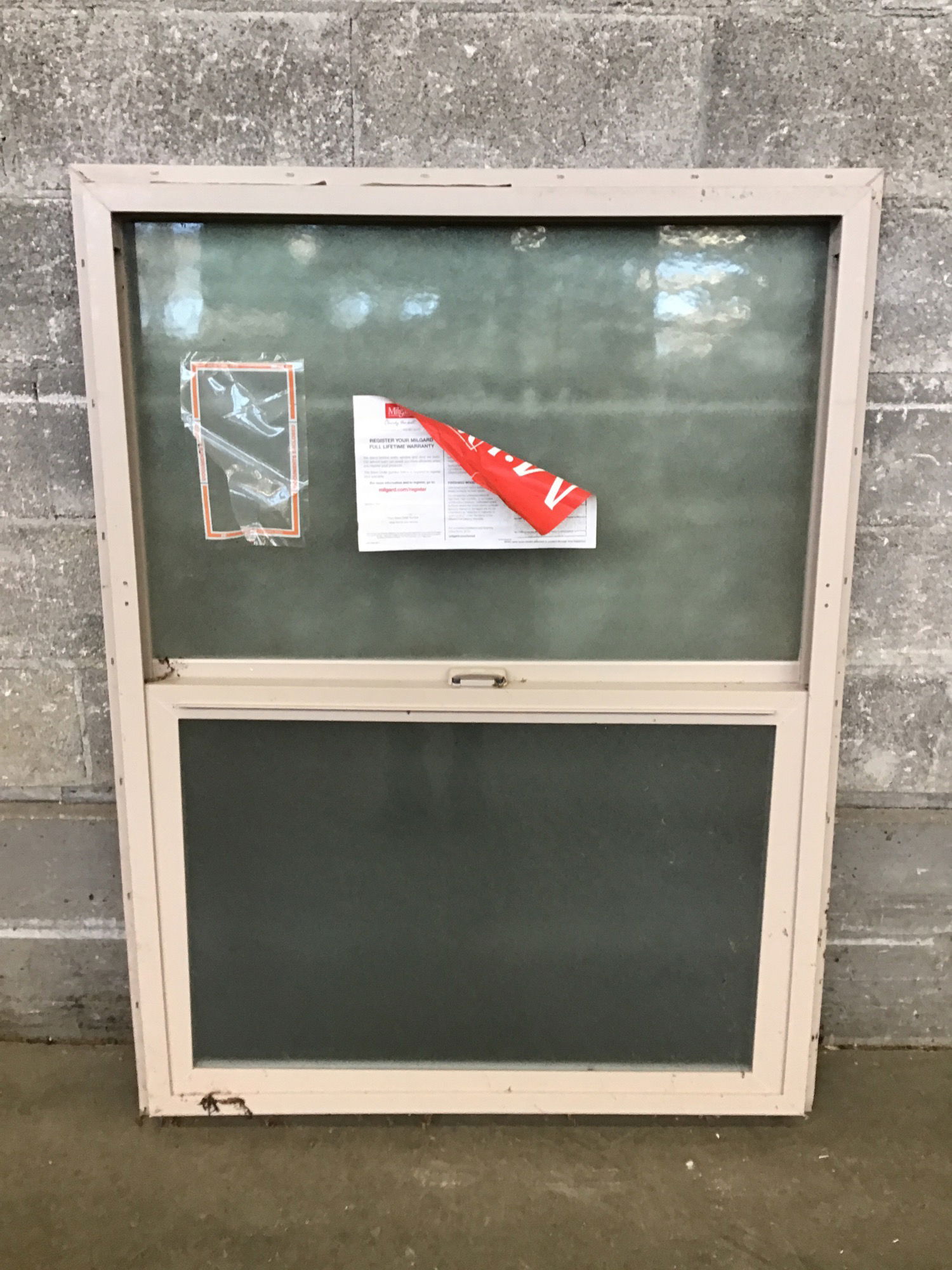 2018 brand new, never installed Milgard beige single hung window with obscured glass, photo is representational.