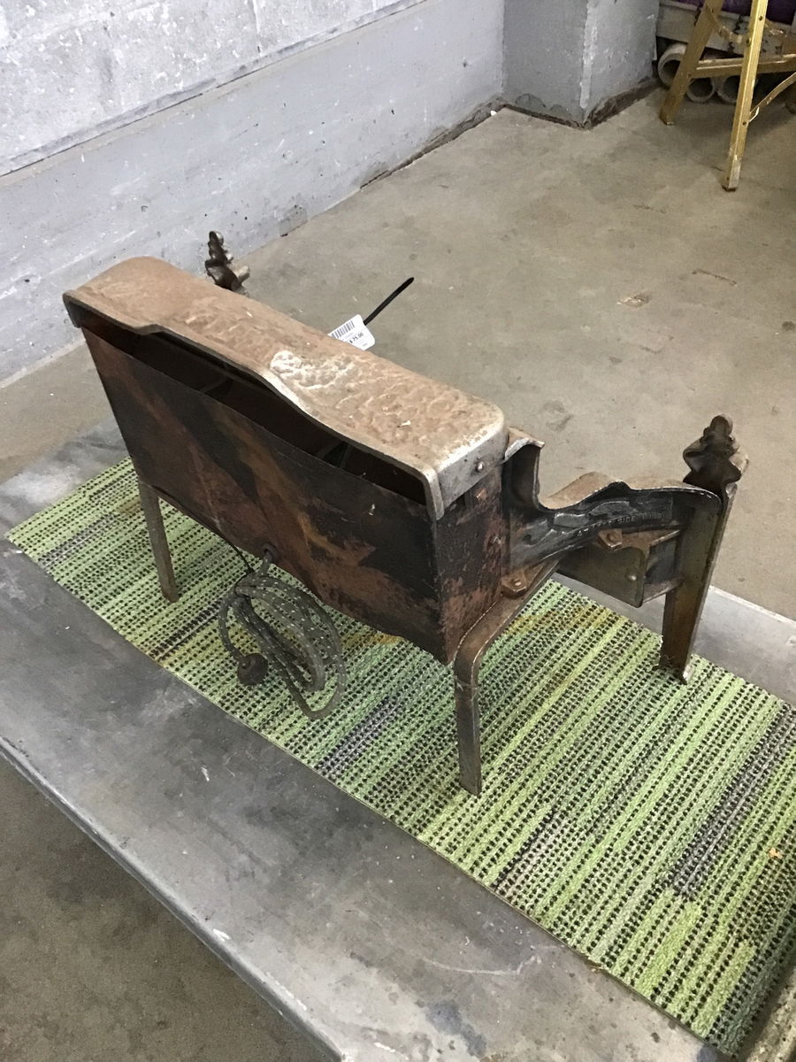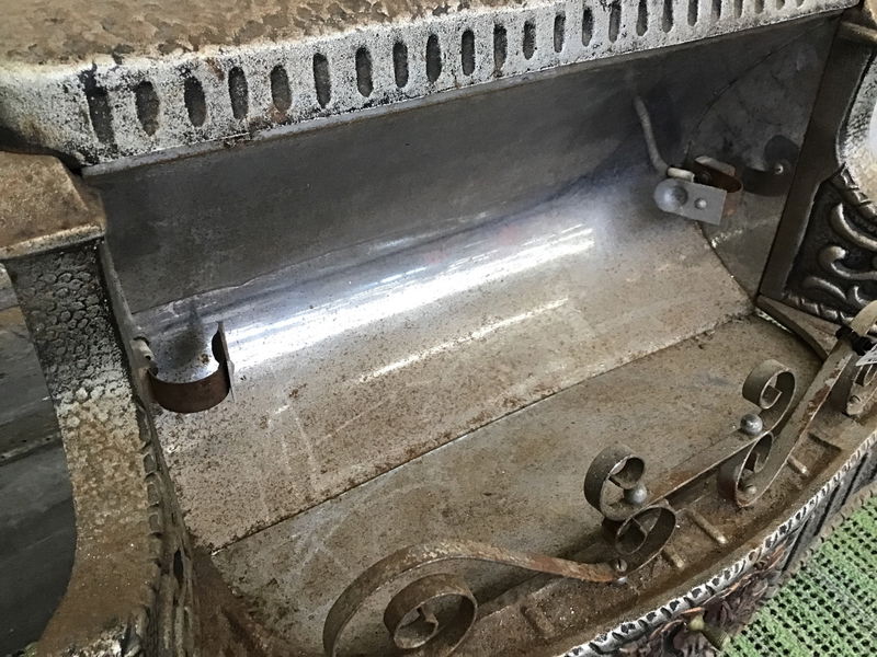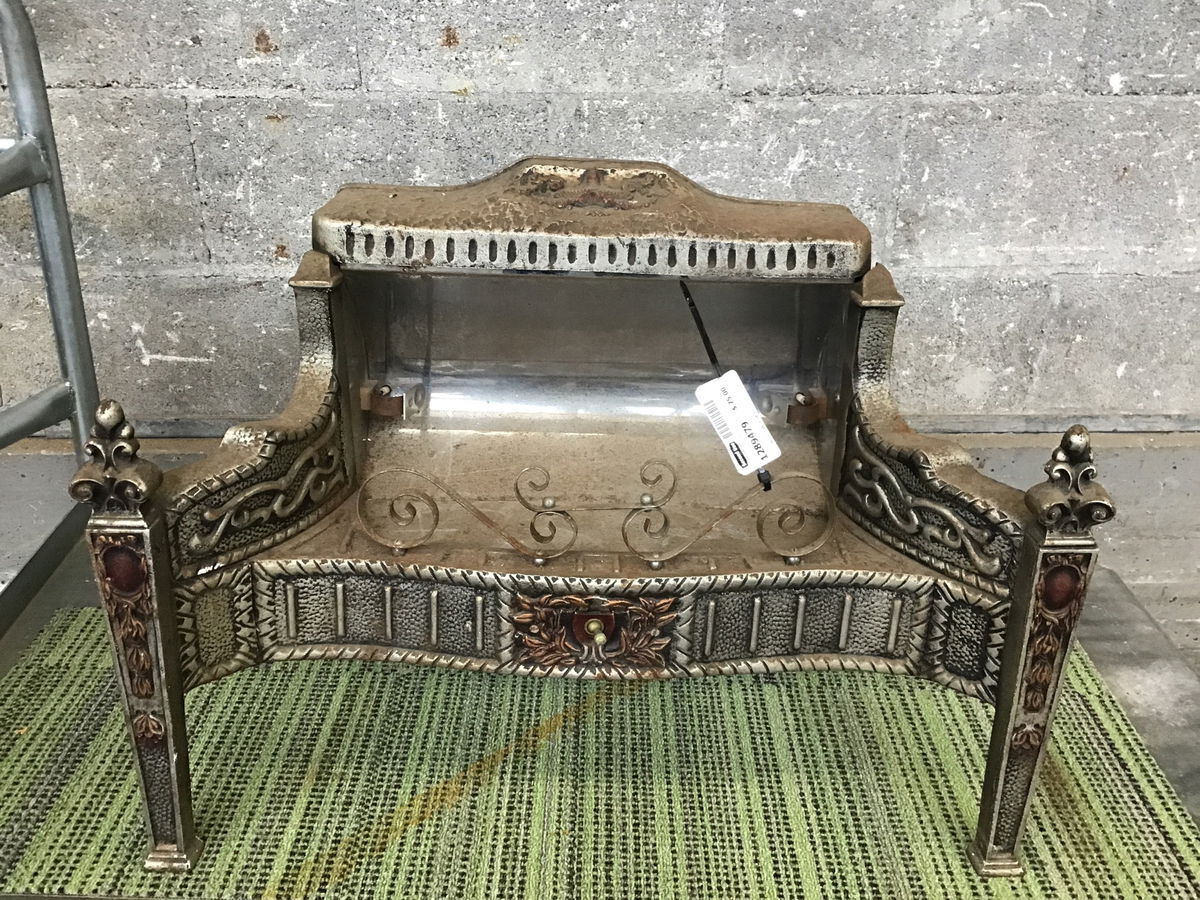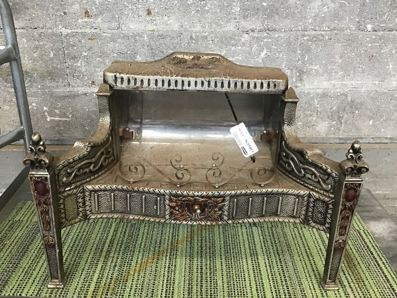 Really cute, deco-ish era cast metal electric 'fireplace', likely not a great idea to use it as a heat source now but it would make a great decor item or plant stand