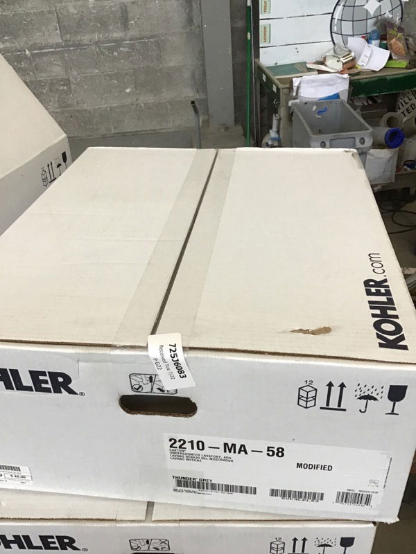 New in box Kohler "Caxton" model undermount porcelain bathroom sink in "Thunder Grey." Photo may be representational. The white model of this sink sells $95 at HD.