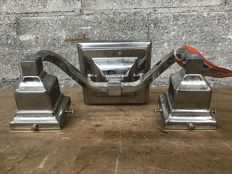 Two-bulb bathroom vanity light with a chrome fixture and frosted glass shades. Suitable for damp locations.