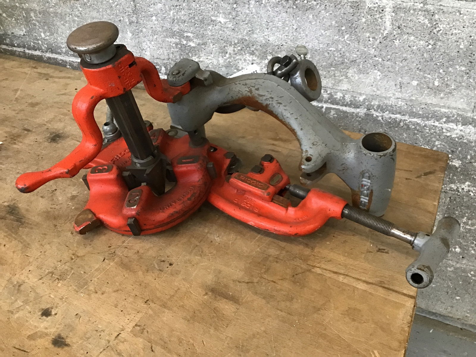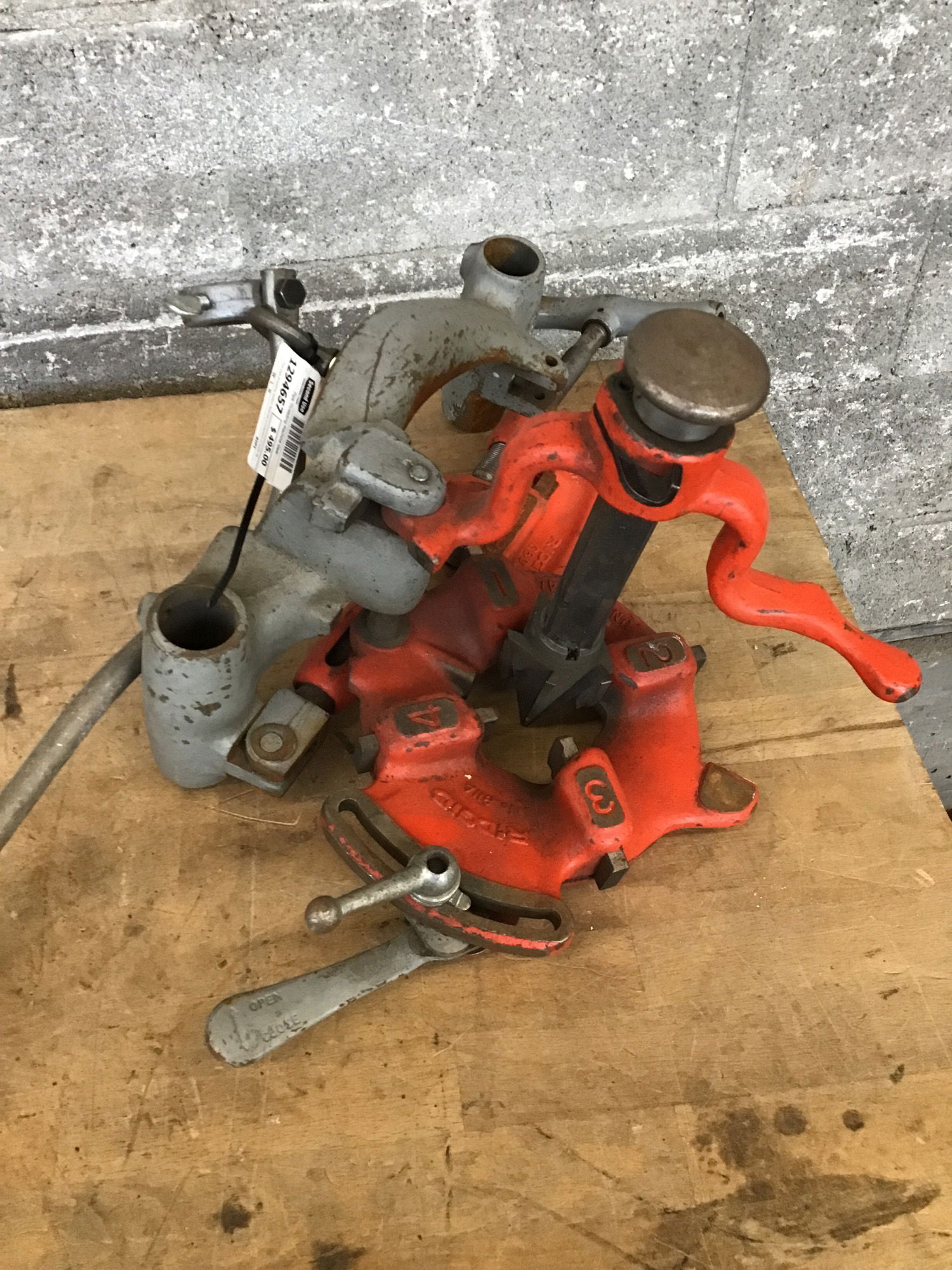 This pipe threading system features a collection of tools designed to be mounted on a Ridgid portable threading machine+a stand (not included). Included are; a Ridgid 311 carriage that mounts the system to a stand, a Ridgid 811A die head, a Ridgid 360 cutter and Ridgid 341 Pipe Reamer. All in, these parts together total almost $2000. Snag this setup today for your budding plumbing business, practically for a song!