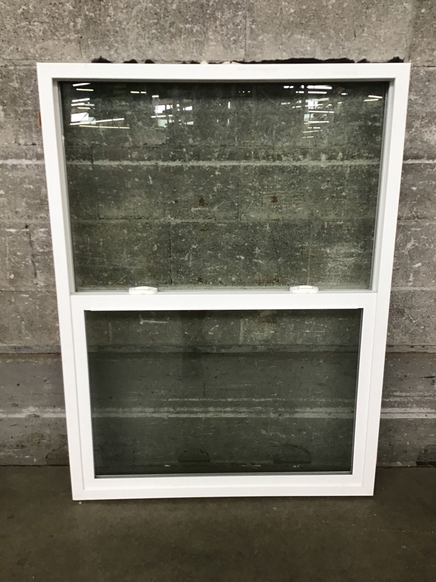 Clean, lightly used vinyl single hung window.