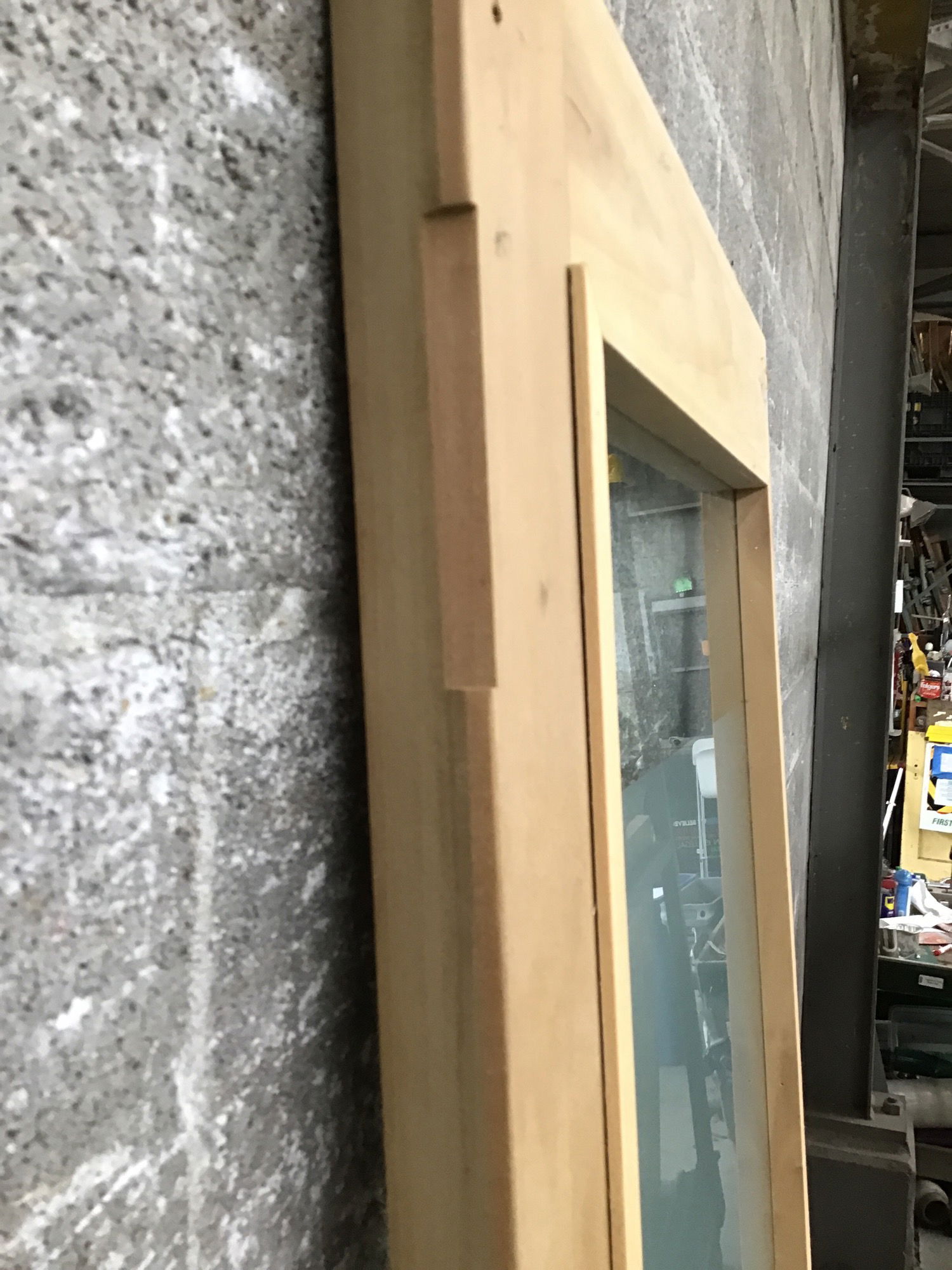 Unique, Poplar framed, full-lite 'door' with obscured glass that was most recently used as a partition and would perhaps continue as such due to its size and odd proportions. It is pretty nonethless and will do its job well, however you decide to use it. One side has a bevel cut. Photo is representational, may have hinge cuts.