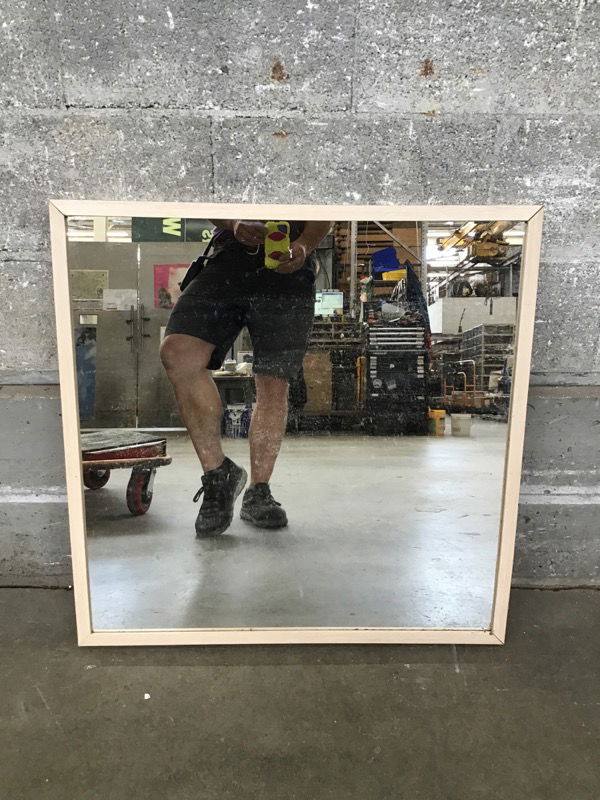 Hej! Ikea "STAVE" mirror. Some swelling along the sides from moisture, but it still gets the job done.