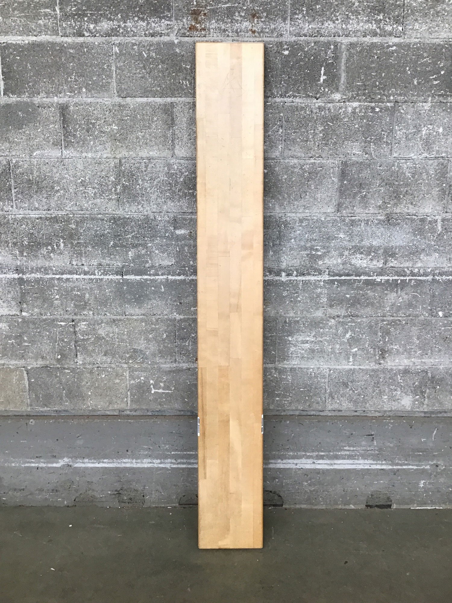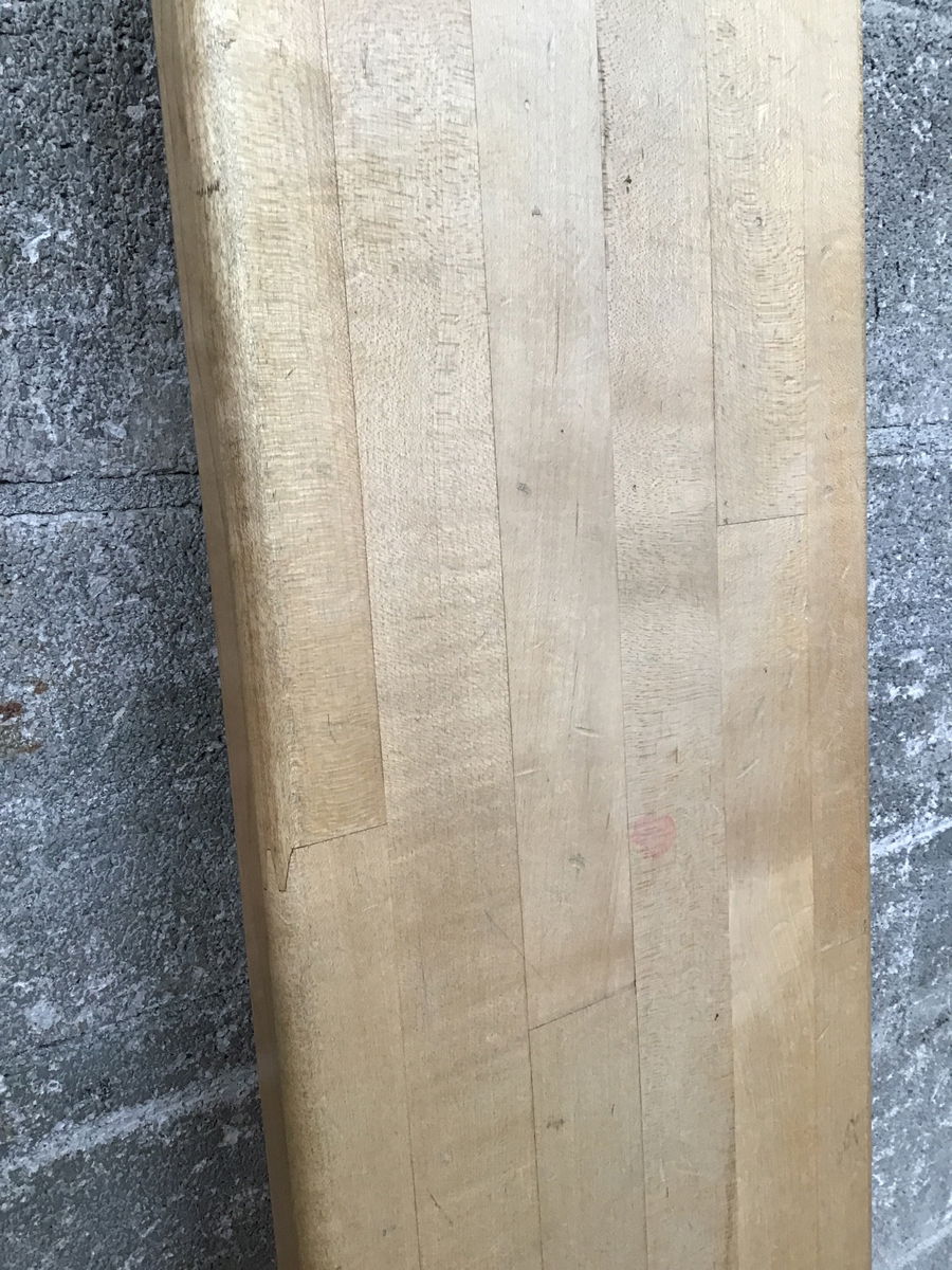 Maple locker room bench seat that's finished on all sides and overall in great shape. Has a few screw holes on one side and light general scuffs and dings from years of butts and feet crawling all over it. May have graffiti, gum, etc.