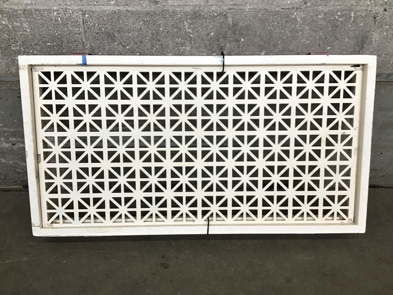 This cool vintage steel screen seems like it might have lived above a door or been used as some sort of privacy screen previously. Now it's looking for a new home and a new purpose!