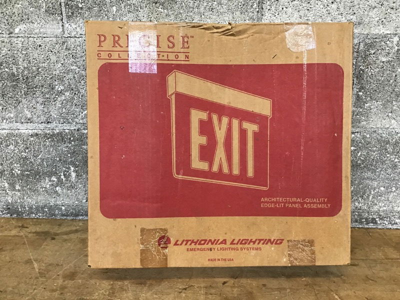 Clear single face exit sign with red letters. Never installed. Similar items retail for $75-300.