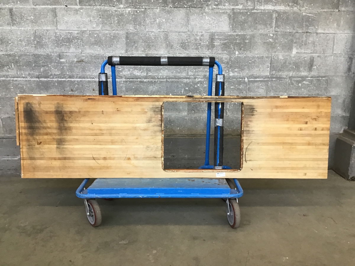 Piece of used, but still usable maple butcher block style countertop with a sink cutout. There's some scratches and discoloration, but there is no joint separation. 26 3/4" to one side of the 24" x 21" sink cutout and 43 1/2" to the other.