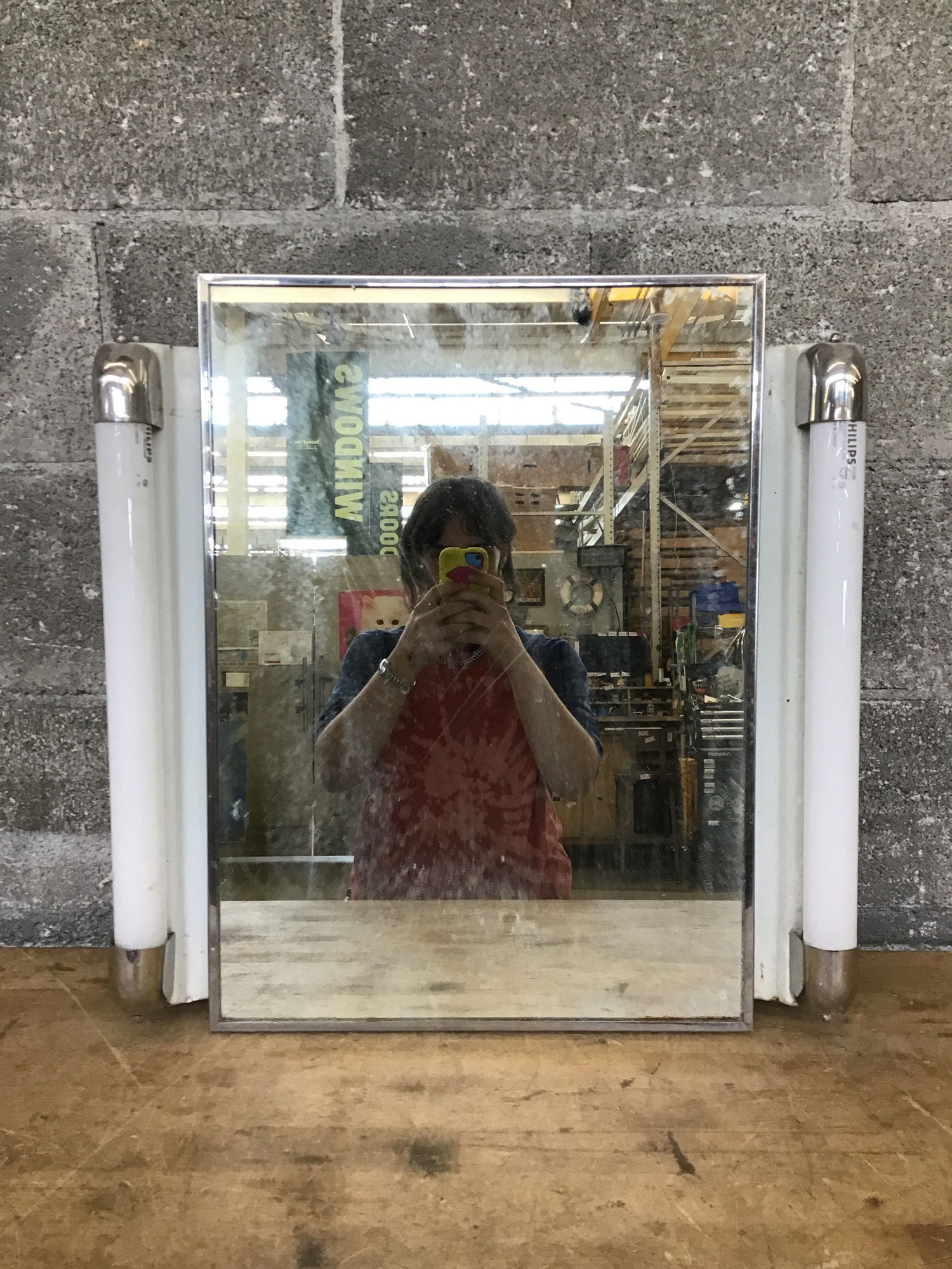 Cool vintage medicine cabinet with flanking fluorescent lights, sold untested and it has no shelves.