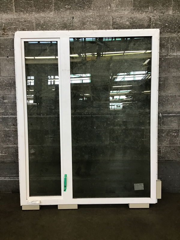 Big casement window with about a 1/3 casement section-on the right side from the exterior. Appears to be never installed.