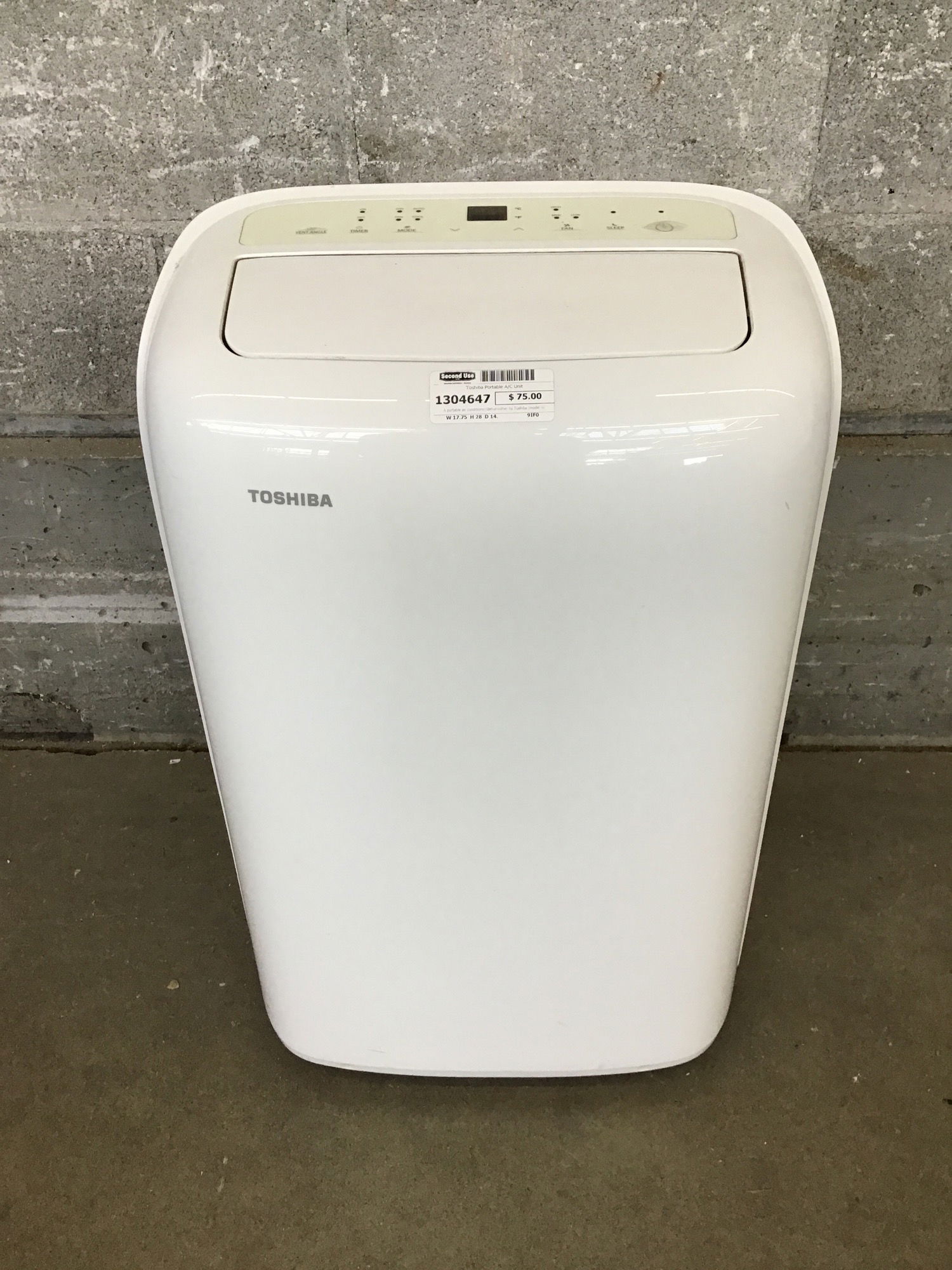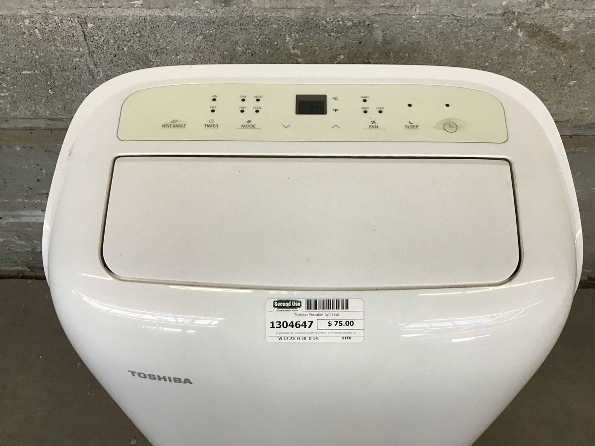 A portable air conditioner/dehumidifier by Toshiba (model no. RAC-PD0811CRU) that looks to be in good shape, though it doesn't have its remote.