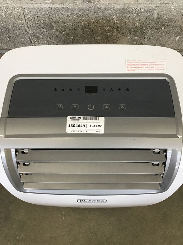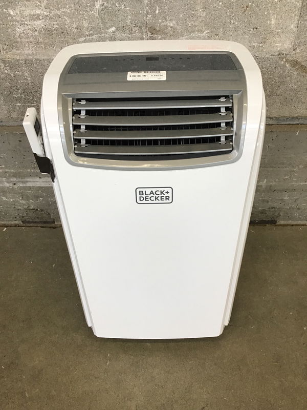 A portable A/C unit (that can also put out heat!) by Black & Decker and its remote control. Suitable for spaces of 700 square feet or so. Retails new for about $550.