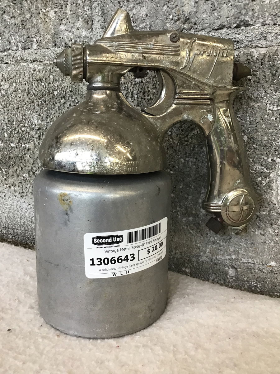 A solid metal vintage paint sprayer by 'Spray-It'. Unsure if its in working order, but has a very solid frame and could be used as industrial artistic decor.