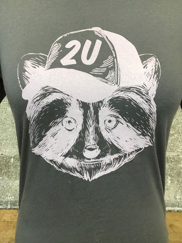 Embrace your inner 'Trash Panda' with our iconic 2U Raccoon printed on a super soft Graphite Grey tee with Lilac ink. Designed in house and printed locally. Unisex XXXLarge.