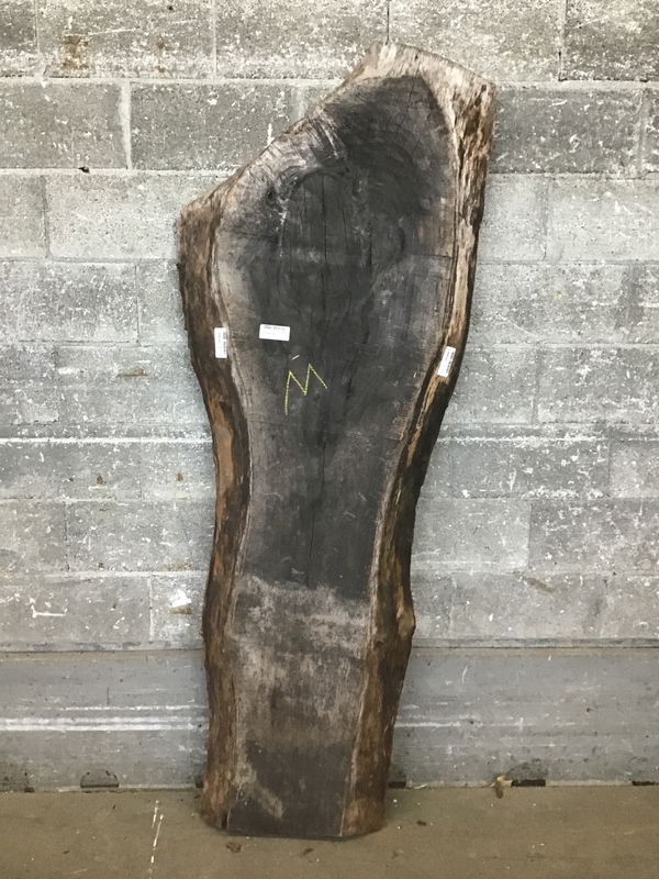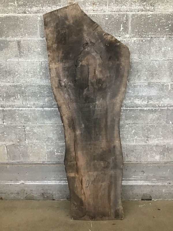 Locally milled and kiln dried. Has greyed on the surface from it's time air drying in the log yard before going to the kiln. Tapers in width from 22" to 12"