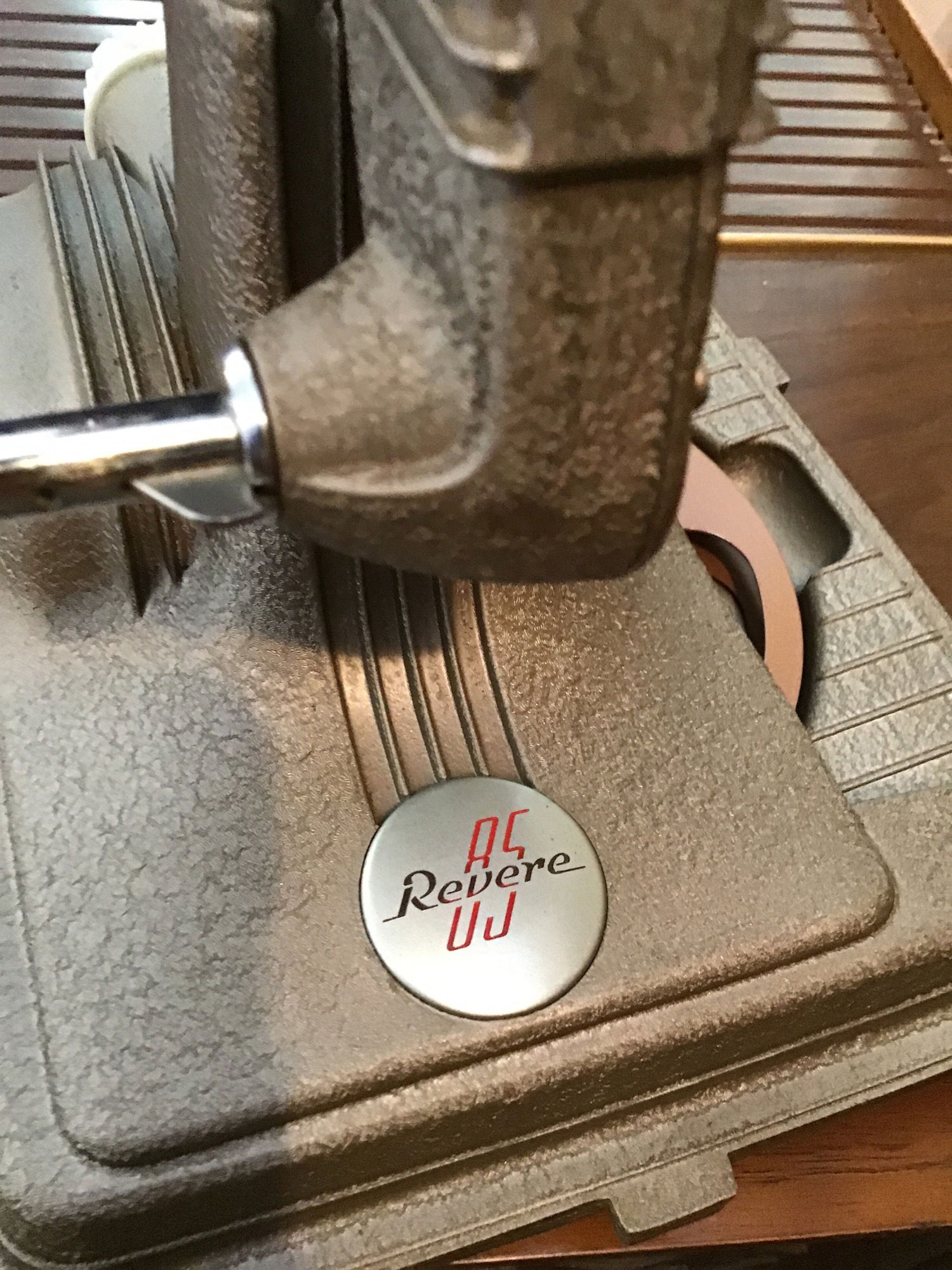 Neat 8mm movie projector from the 1940s made by Revere Camera Company. Seems to be in great shape and comes in a brown metal case the latches on top. No idea if this works, no power cord or anything but an amazing project or piece of decor.