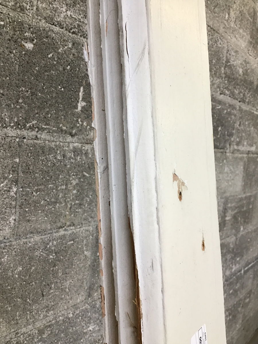 Three pieces of reclaimed painted clear fir baseboard. They're used and have some dings here and there, but still usable. I rounded down to account for splits or dings on ends. Lengths are 6', 8' and 10'.