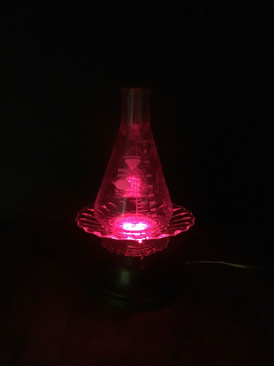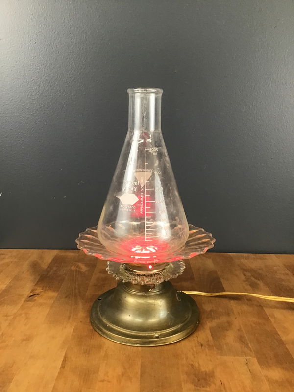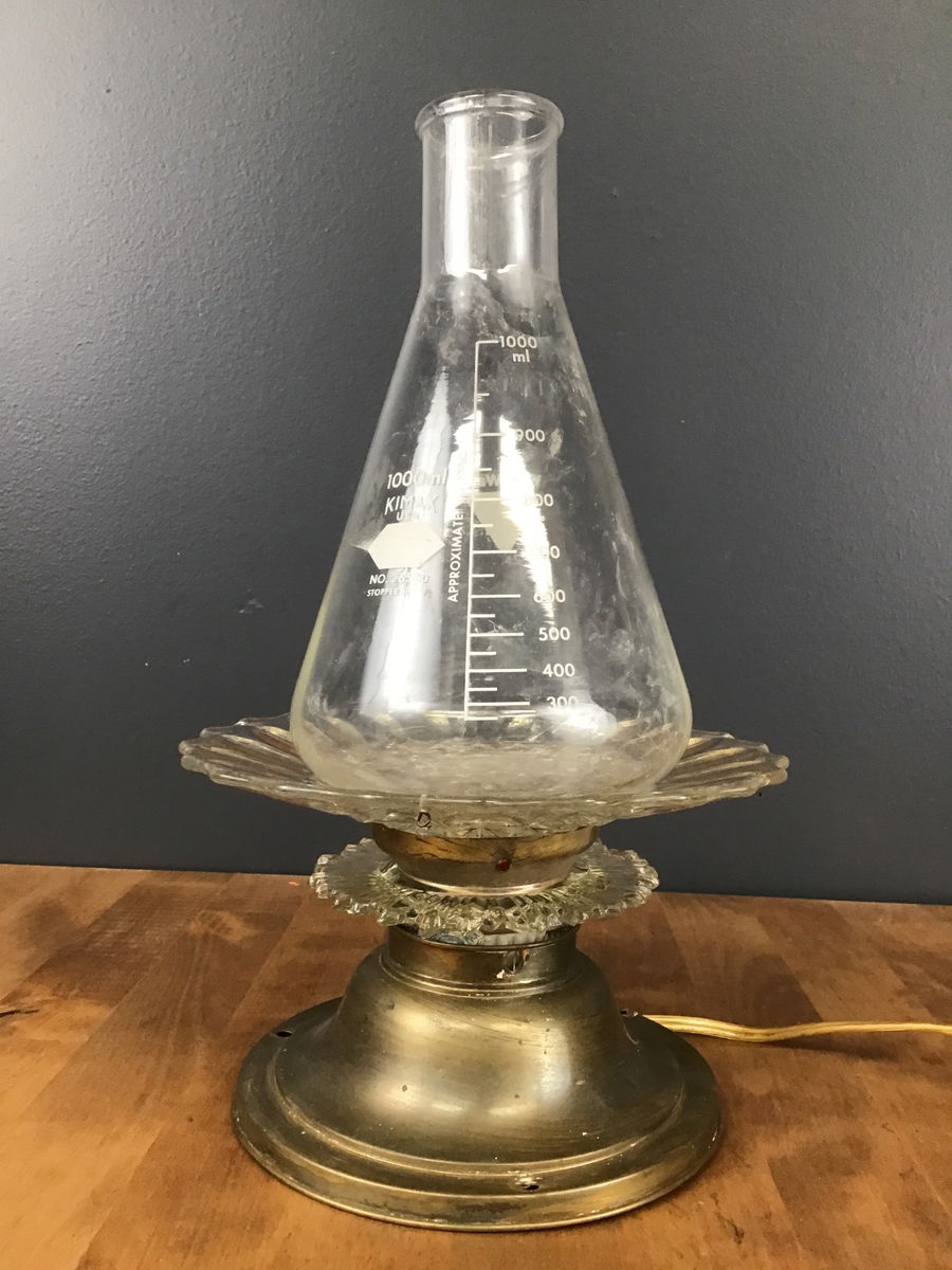 GET SPOOKY this Halloween, with this unique decorative table lamp. Created in our lightshop, this fixture has been Frankenstein'ed together from various pieces of our lighting library, and scientific labware from another salvage job.