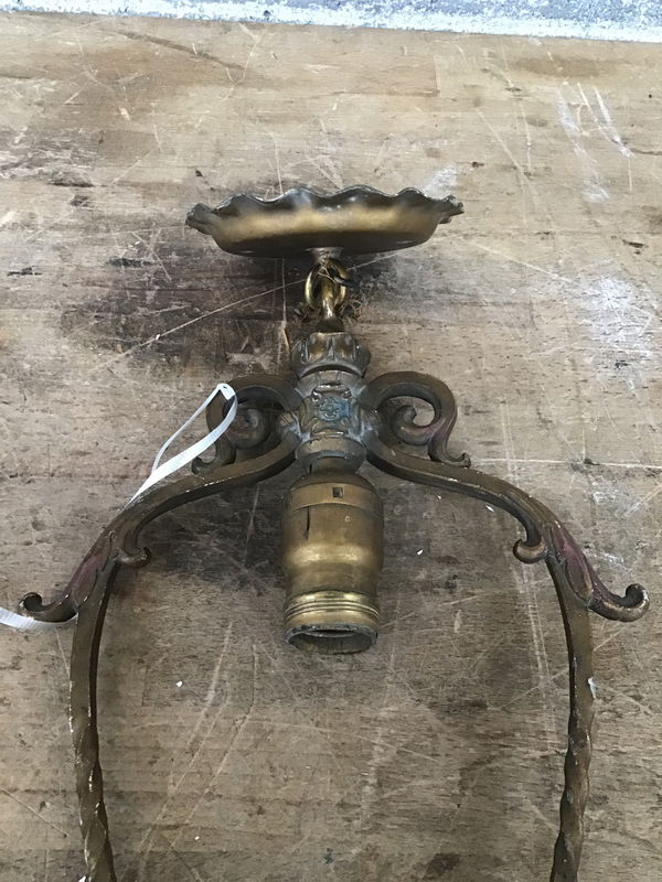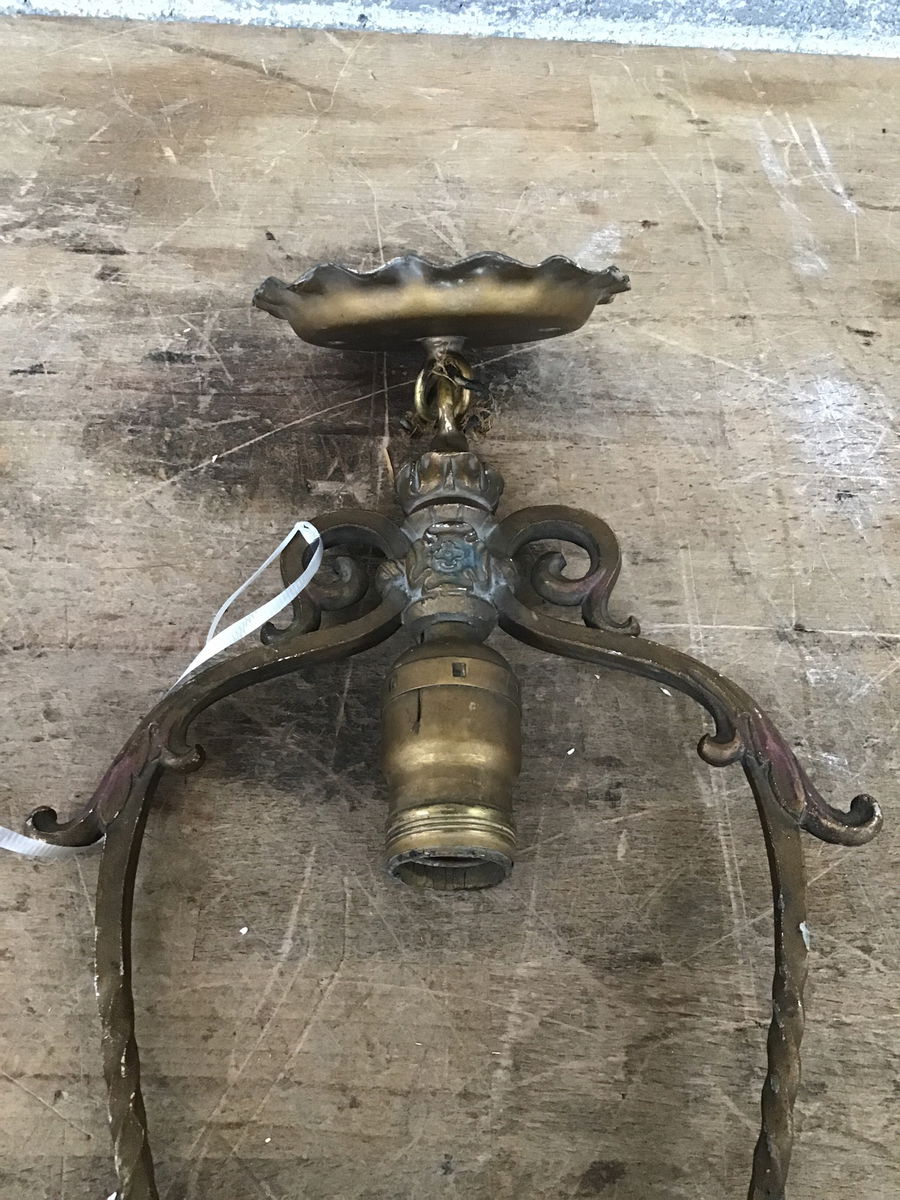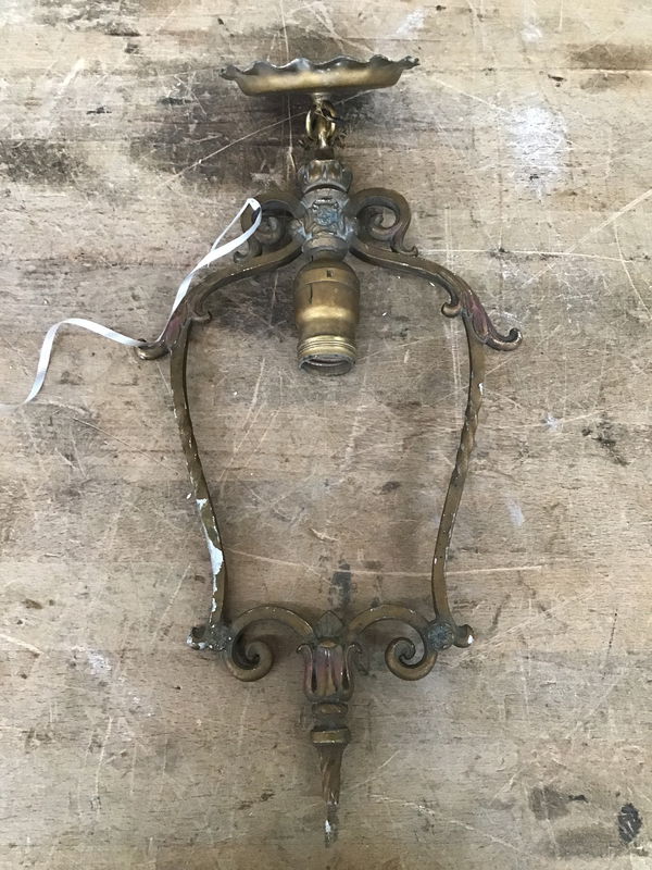 This little beauty is full of Art Deco flair! With its scalloped canopy and swirling designs framing the bulb, it's sure to add some visual interest to any space. Will need rewiring, but that's what our Lighting Services are for!
