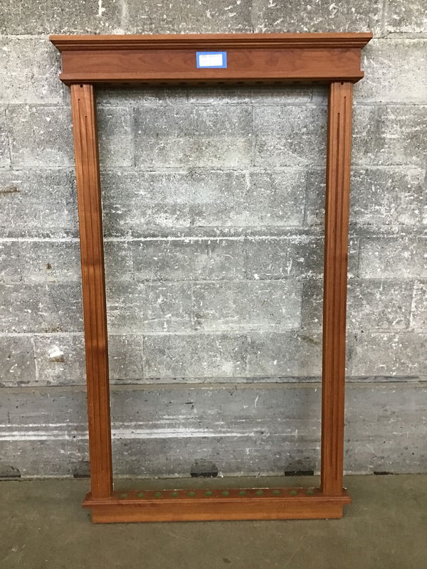 A wall-mounted stand for holding up to twelve pool cues. It sports rich, warm mahogany construction without any finish and will bring a richness to your billiards room or man cave!