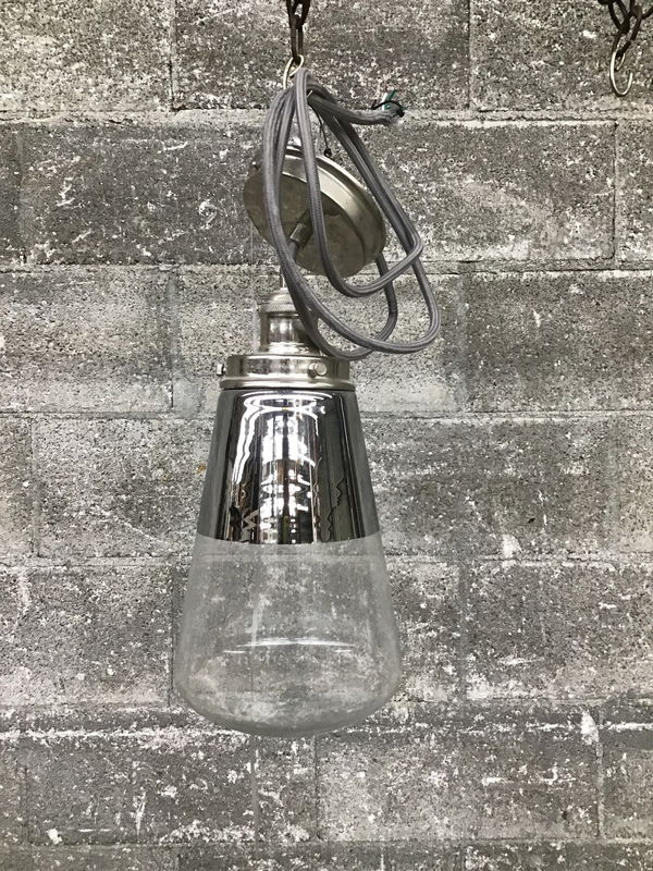 Nickel finish cord pendant with clear glass shade, ca. 2016 from Level Lightings Co. There's about 78" of cord above height of fixture listed.