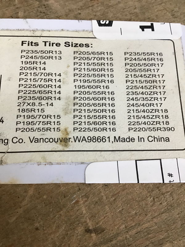 USE AT YOUR OWN RISK! Laclede S Class Cable Chains, Part # 702103411. Looks like these are for a smaller size passenger car. See photos for sizes they'll fit.