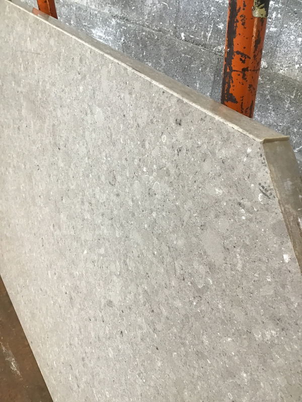 Dimensions listed for this manmade stone countertop are the approximate largest rectangle you could cut with the finished front edge (from miter to sink cutout). Length for transport purposes is 60".