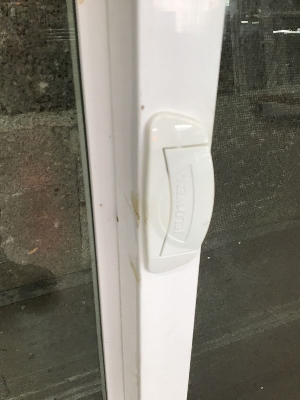 Jeld Wen white vinyl sliding window with a nailing flange