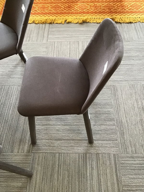 BluDot "Chip" dining chair that is in pretty rough shape, lots of stains and could use a little TLC. Sturdy and work great as a chair, just not the most aesthetically pleasing. If looks don't matter to you this is a great deal!