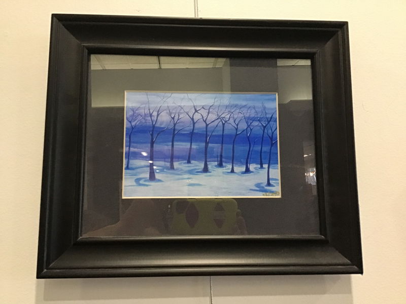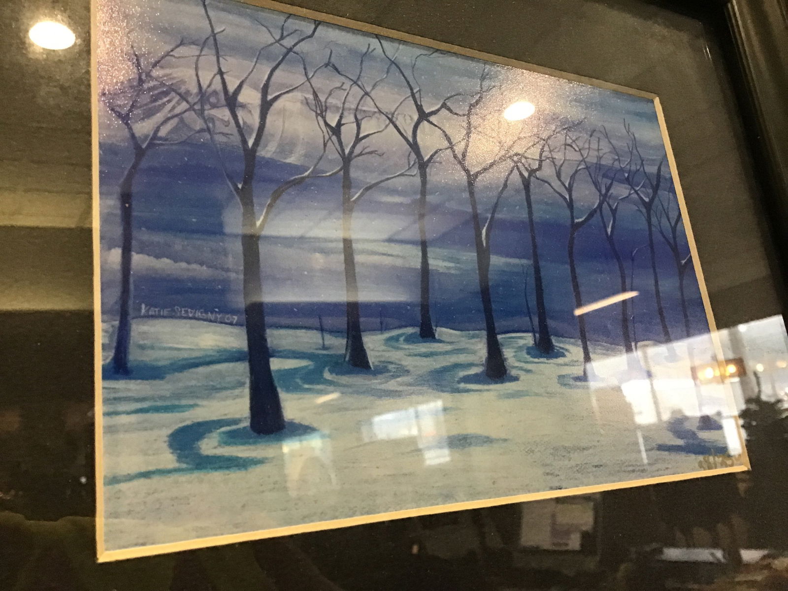 Nice winter scene by artist Katie Sevigny. Shows a serene and calm winter scene with a score of barren trees. Numbered 38/350 and really nicely framed!