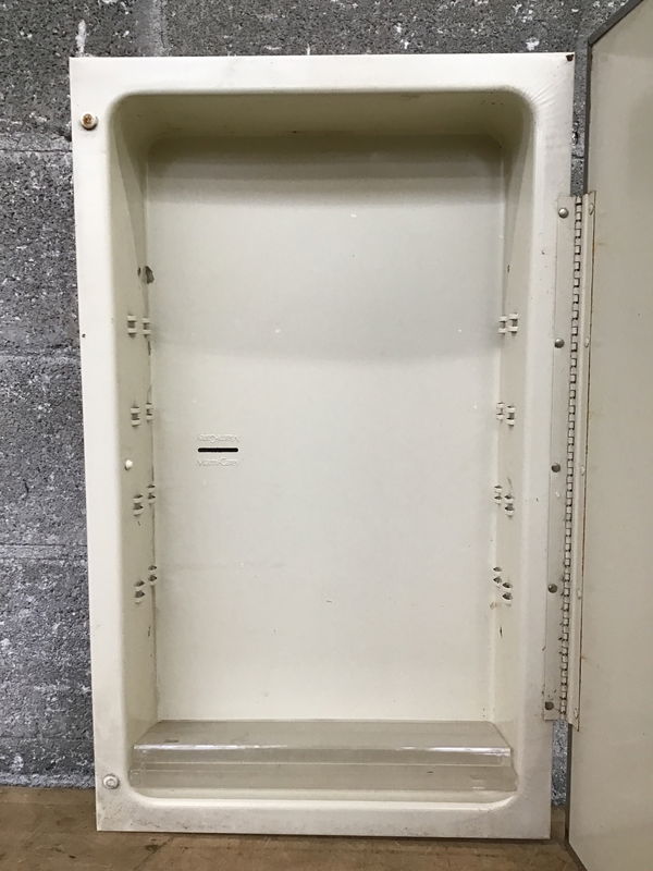 Recessed metal medicine cabinet in good shape. Has plastic shelves inside.