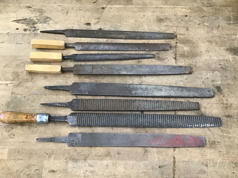 Great collection of 8 various large format wood and metal files. Included names: 2x Nicholson, Carson, and R. Huff and CO. Several have handmade handles for extra holdability. The largest wood rasp has a 16" surface!