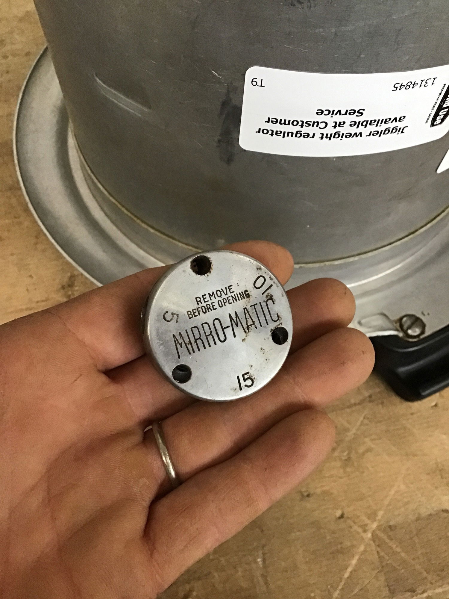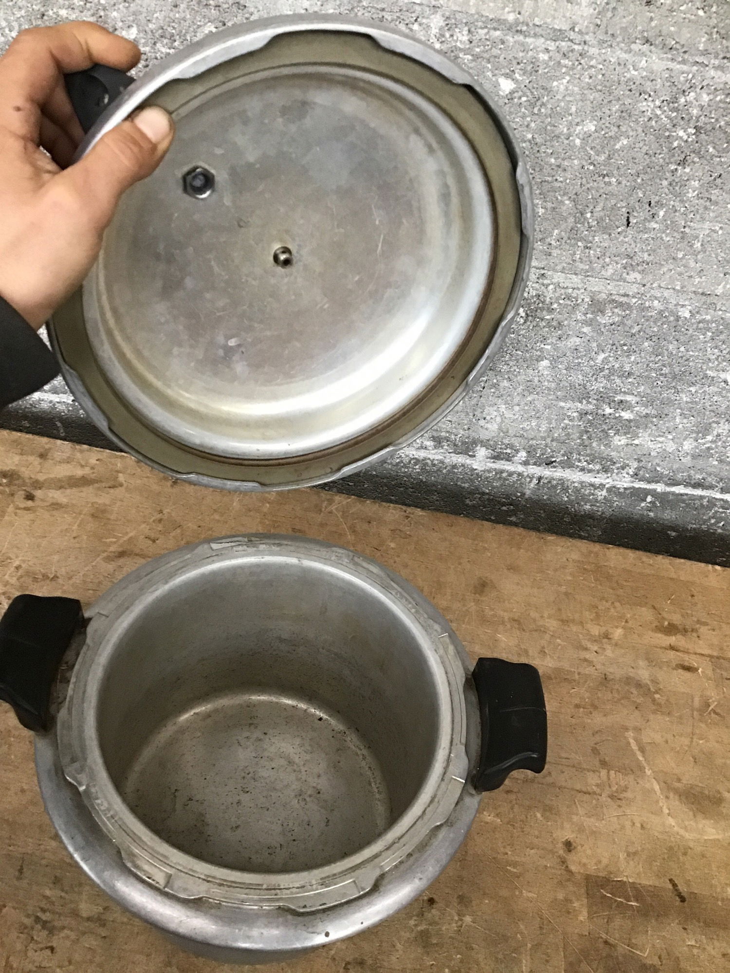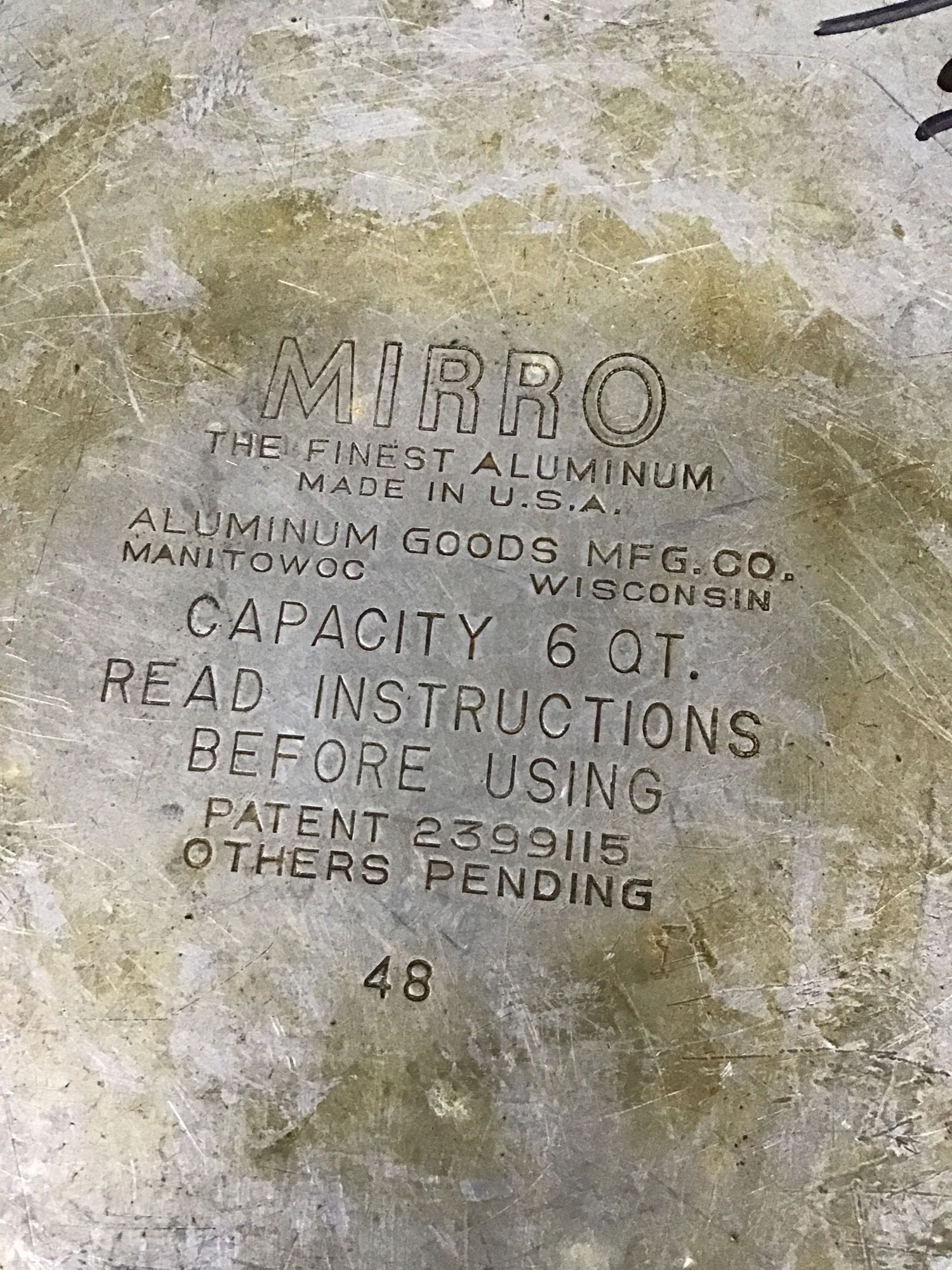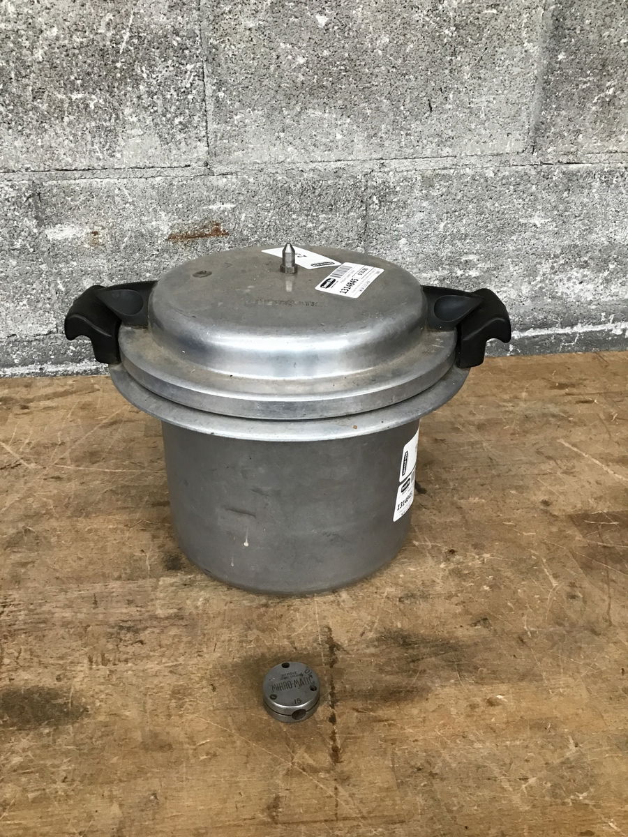 Vintage Mirro-Matic 6qt stove top pressure cooker made of solid aluminum. Looks like it holds four pint jars.