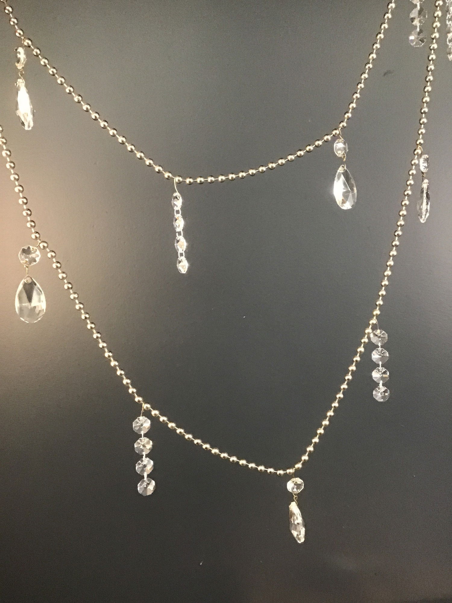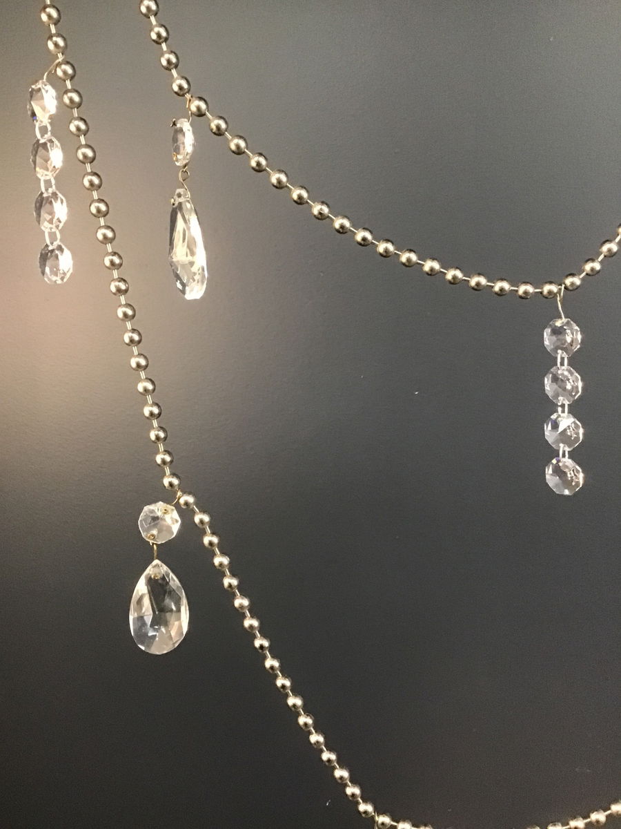 A 6 foot length of 1/4 inch ball chain, and 1/2" hexagon crystal chain and 2" pendalogues from an old chandelier get together to become a beautiful and interesting garland for your Christmas tree! Or just hang it above a window, and look at how pretty it is! We have a lot of this ball chain at the Seattle store in 14' lengths, just waiting for that creative mind of yours to make some into something awesome! It's on our website, but it's a bulked item, meaning there are no holds, so you'll have to come on down to see it!