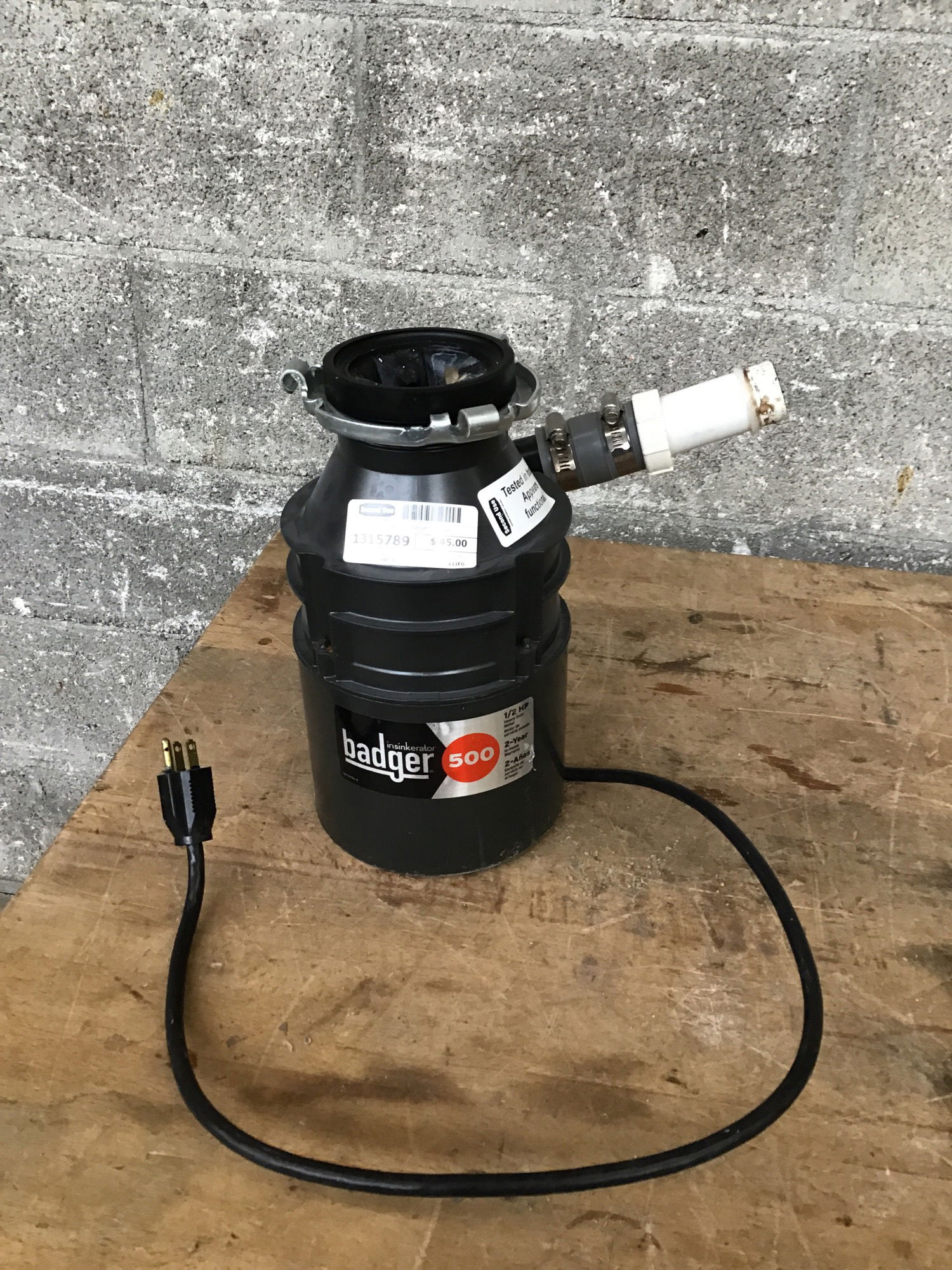 Badger disposal unit in good shape, looks to be relatively new. Will need the upper part of the mounting bracket (we probably have them in stock!). Dispose away!